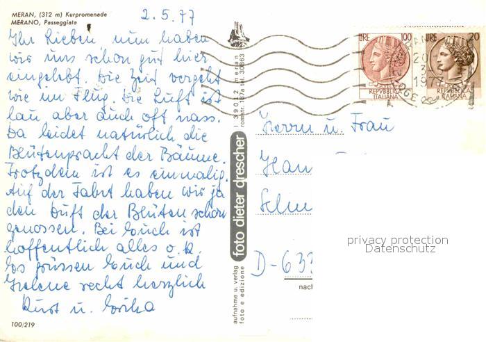 old postcard Meran Merano Kurpromenade postalisch gelaufen Erhaltung siehe scans [AndreD76]
