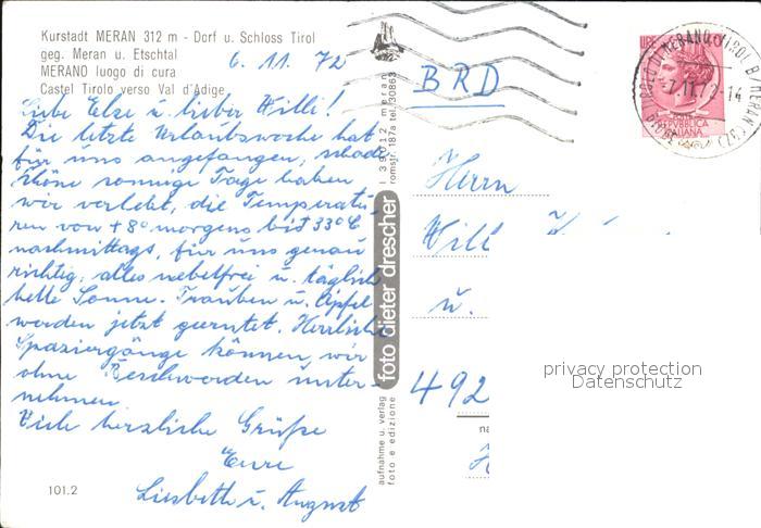 old postcard Meran Merano Luftaufnahme postalisch gelaufen Erhaltung siehe scans