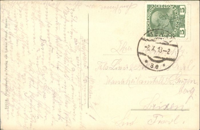 old postcard Meran Merano Meran Weg nach Schloss Tirol Kreuz postalisch gelaufen
