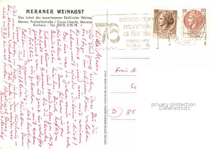 old postcard Meran Merano Meraner Weinkost Lokal Gastraeume postalisch gelaufen Erhaltung siehe scans [WerneD78]