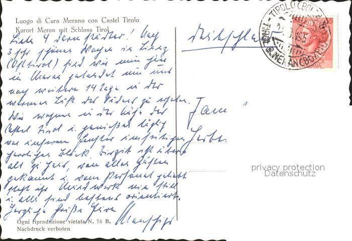 old postcard Meran Merano mit Schloss Tirol postalisch gelaufen Erhaltung siehe scans