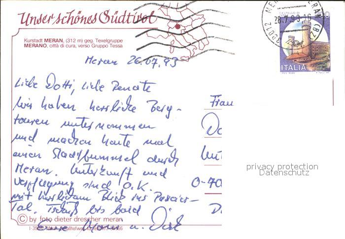 old postcard Meran Merano Panorama postalisch gelaufen Erhaltung siehe scans