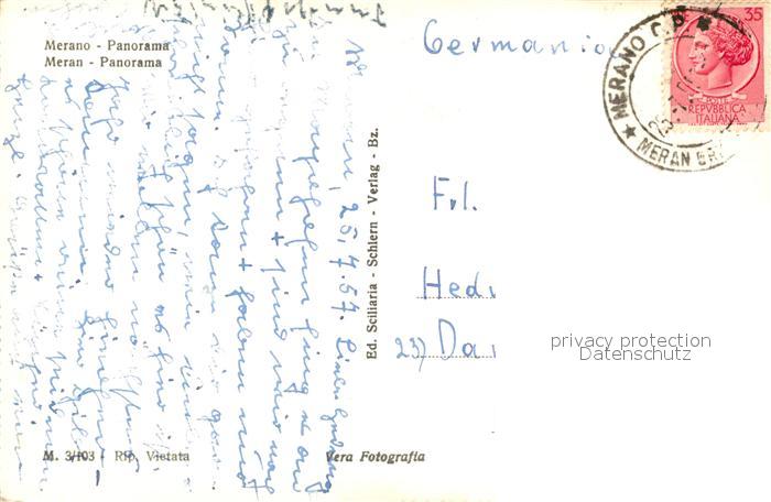 old postcard Meran Merano Panorama postalisch gelaufen Erhaltung siehe scans [FriedD77]