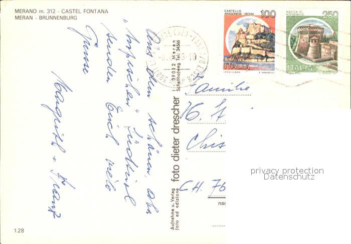 old postcard Meran Merano Panorama Brunnenburg postalisch gelaufen Erhaltung siehe scans [AndreD76]