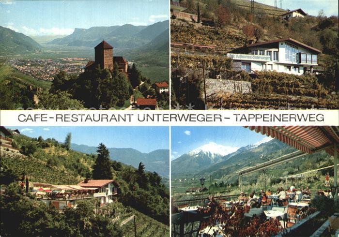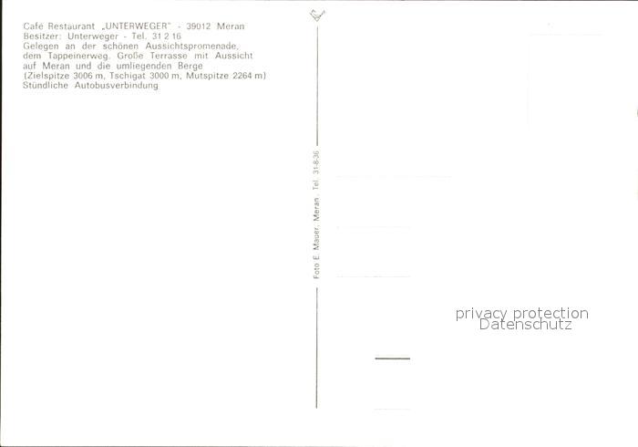 Meran Merano Panorama Cafe Restaurant Unterweger Terrasse postalisch nicht gelaufen Erhaltung siehe scans