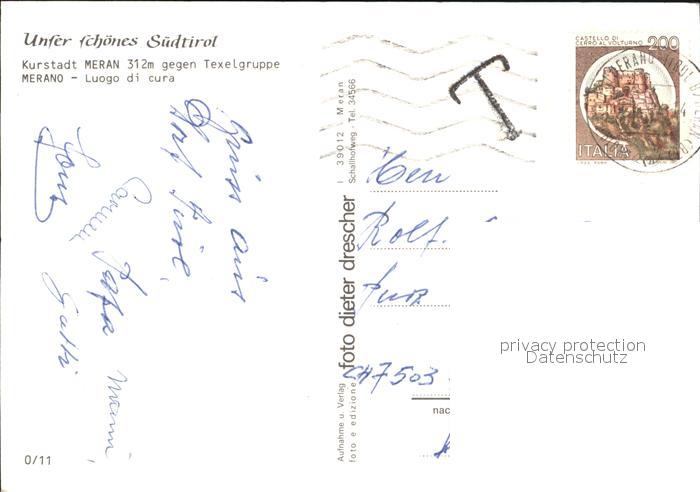 old postcard Meran Merano Panorama Kurstadt mit Texelgruppe postalisch gelaufen Erhaltung siehe scans [FriedD77]