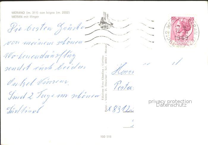 old postcard Meran Merano Panorama mit Ilfinger Sarntaler Alpen postalisch gelaufen Erhaltung siehe scans