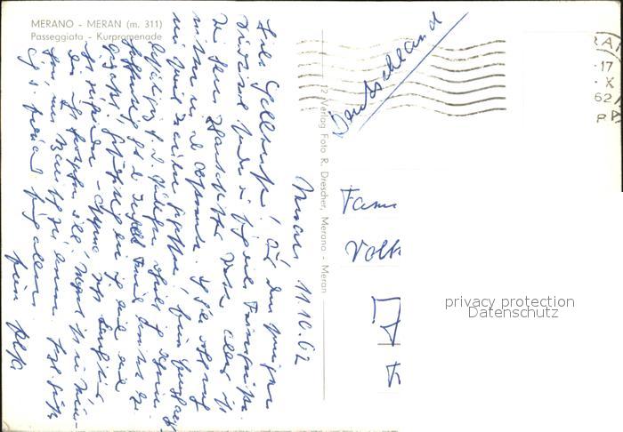 old postcard Meran Merano Passeggiata Kurpromenade postalisch gelaufen Erhaltung siehe scans
