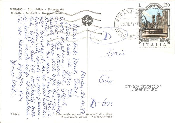 old postcard Meran Merano Passeggiata Kurpromenade Trachten postalisch gelaufen Erhaltung siehe scans