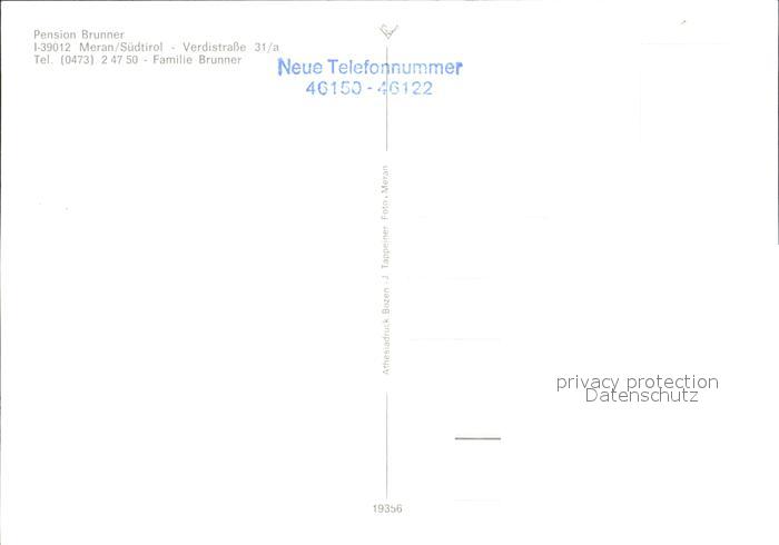 Meran Merano Pension Brunner Terrasse Schwimmbad postalisch nicht gelaufen Erhaltung siehe scans