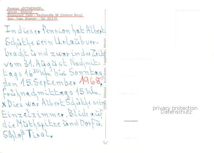 Meran Merano Pension Sittnerhof postalisch nicht gelaufen Erhaltung siehe scans [WerneD78]