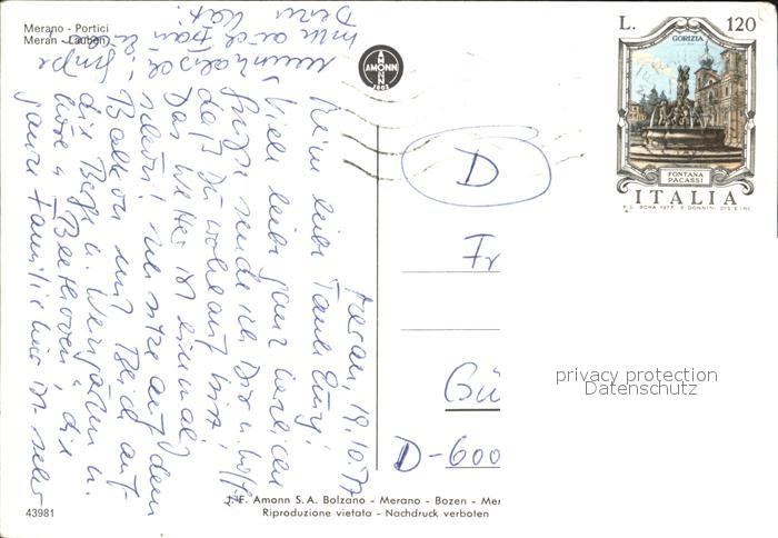 old postcard Meran Merano Portici Lauben postalisch gelaufen Erhaltung siehe scans