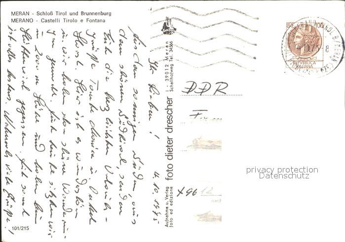 old postcard Meran Merano Schloss Tirol und Brunnenburg Alpenpanorama postalisch gelaufen Erhaltung siehe scans