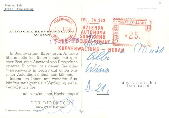 old postcard Meran Merano Schwimmbad postalisch gelaufen Erhaltung siehe scans [WerneD78]