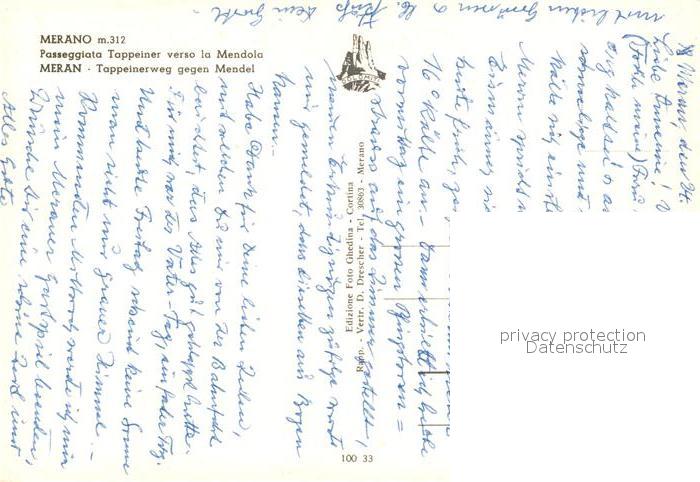 Meran Merano Tappeinerweg gegen Mendel Passeggiata Tappeiner verso la Mendola postalisch nicht gelaufen Erhaltung siehe scans [FriedD77]