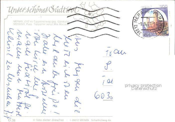 old postcard Meran Merano Tappeinerweg mit Gantkofel postalisch gelaufen Erhaltung siehe scans [WerneD78]