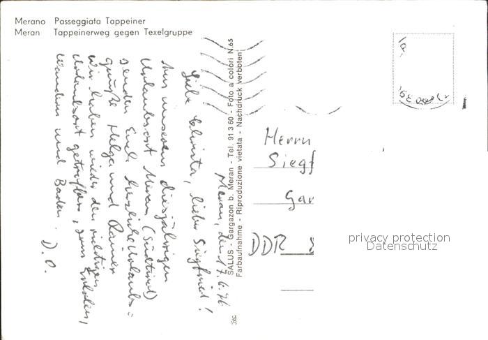 old postcard Meran Merano Tappeinerweg Texelgruppe postalisch gelaufen Erhaltung siehe scans