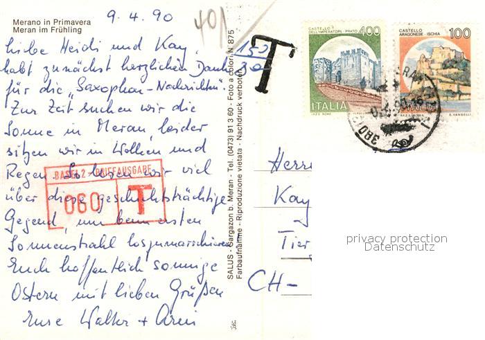 old postcard Merano Meran postalisch gelaufen Erhaltung siehe scans [LiesaD40]