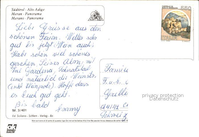old postcard Merano Meran postalisch gelaufen Erhaltung siehe scans