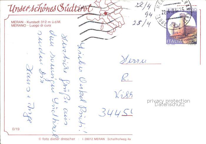 old postcard Merano Meran postalisch gelaufen Erhaltung siehe scans