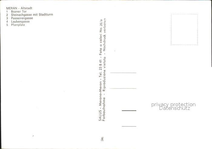 Merano Meran Bozner Tor Steinachgasse mit Stadtturm Passeiergasse Laubengasse Pfarrplatz postalisch nicht gelaufen Erhaltung siehe scans [WerneD78]