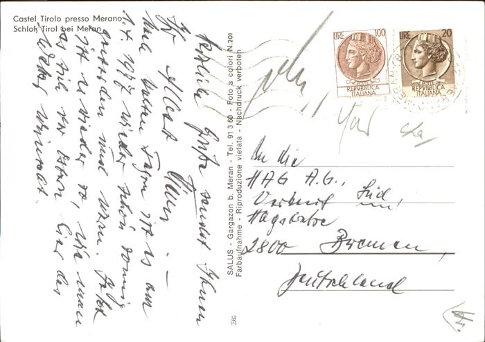 old postcard Merano Meran Castel Tirolo Panorama postalisch gelaufen Erhaltung siehe scans