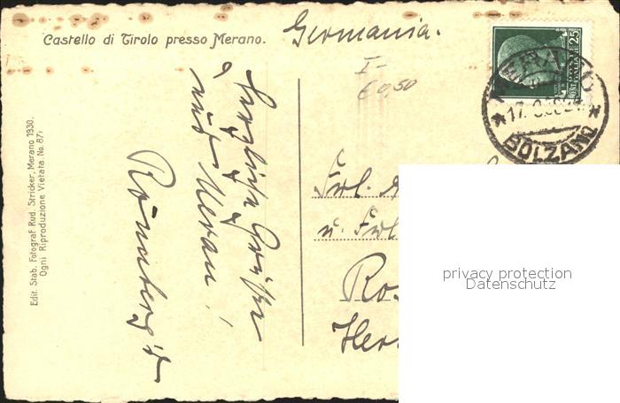 old postcard Merano Meran Castello di Tirolo presso Merano postalisch gelaufen Erhaltung siehe scans