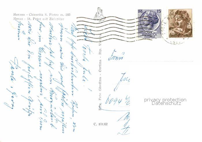 old postcard Merano Meran Chiesetta S. Pietro postalisch gelaufen Erhaltung siehe scans [LiesaD40]