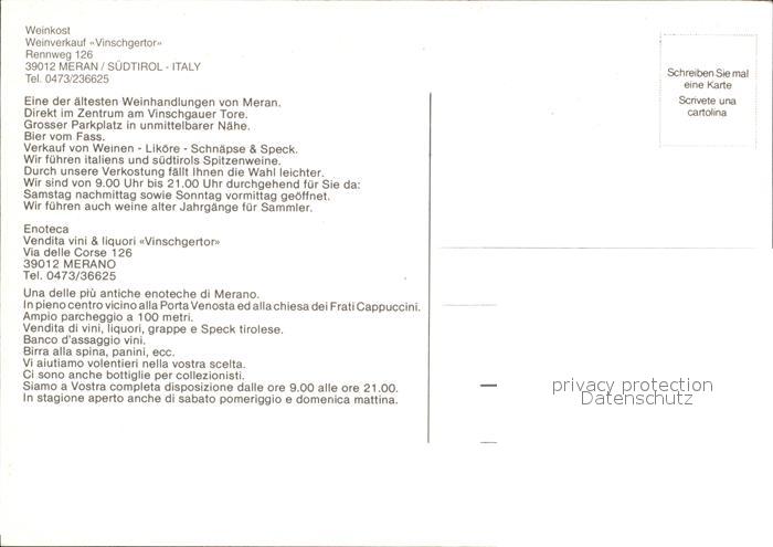 Merano Meran Enoteca Weinverkauf Vinschgertor postalisch nicht gelaufen Erhaltung siehe scans