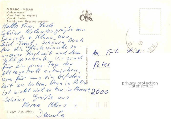 old postcard Merano Meran Fliegeraufnahme postalisch gelaufen Erhaltung siehe scans [WerneD78]