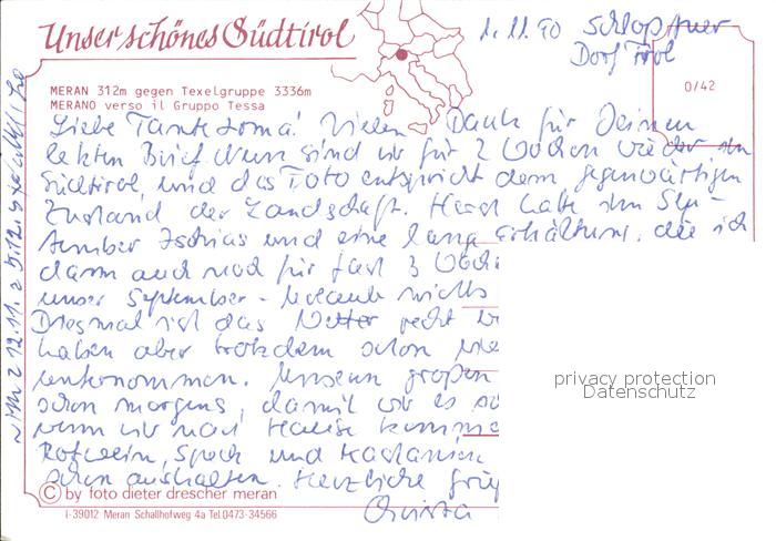 Merano Meran gegen Texelgruppe postalisch nicht gelaufen Erhaltung siehe scans
