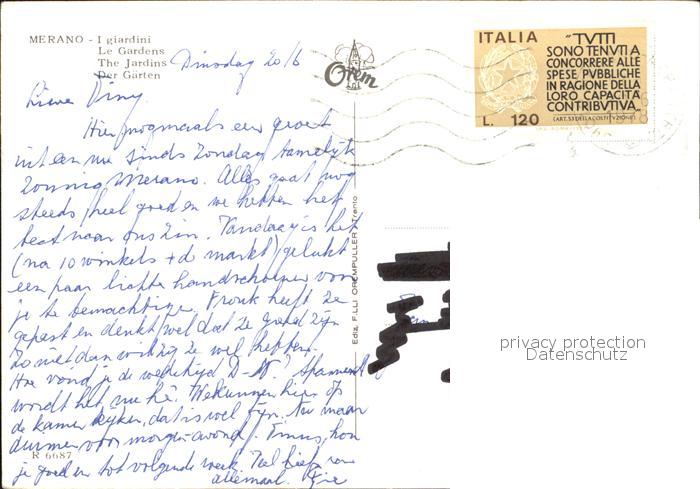 old postcard Merano Meran Giardini postalisch gelaufen Erhaltung siehe scans [LiesaD40]