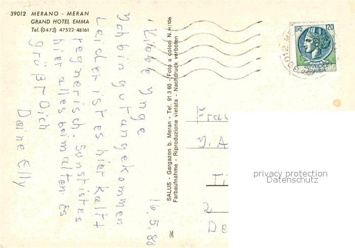 old postcard Merano Meran Grand Hotel Emma postalisch gelaufen Erhaltung siehe scans [LiesaD40]
