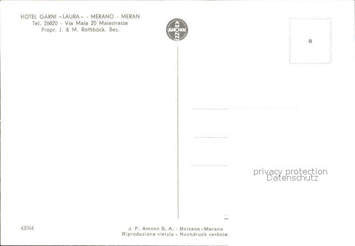 Merano Meran Hotel Garni Laura Terrasse postalisch nicht gelaufen Erhaltung siehe scans