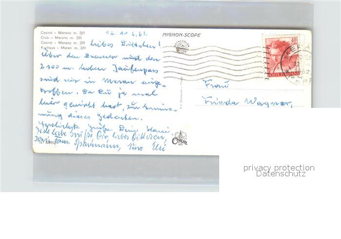 old postcard Merano Meran Kasino postalisch gelaufen Erhaltung siehe scans