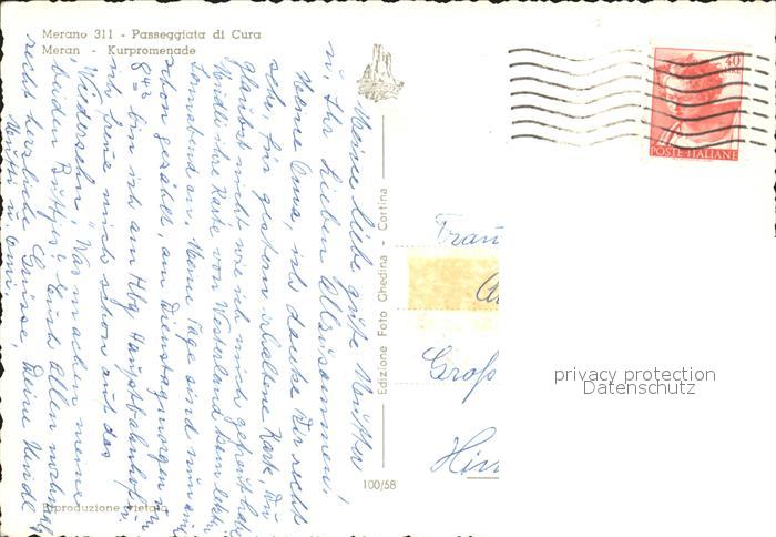 old postcard Merano Meran Kurpromenade postalisch gelaufen Erhaltung siehe scans