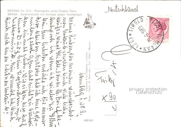 old postcard Merano Meran Kurpromenade Kurhaus Texelgruppe postalisch gelaufen Erhaltung siehe scans