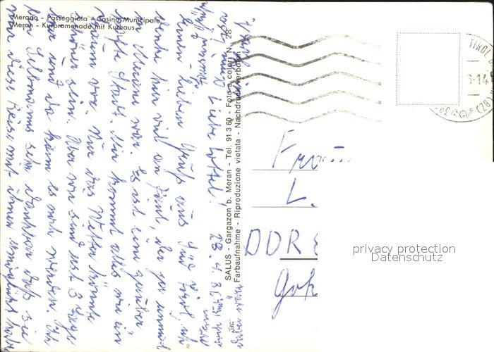 old postcard Merano Meran Kurpromenade mit Kurhaus postalisch gelaufen Erhaltung siehe scans