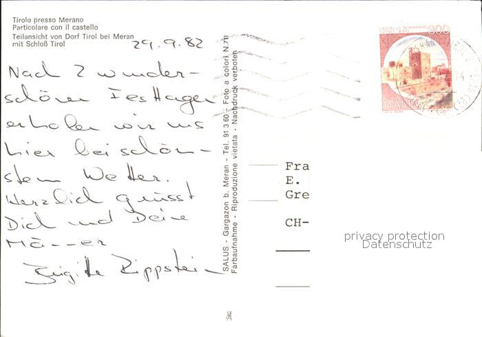old postcard Merano Meran mit Dorf-Tirol und Schloss postalisch gelaufen Erhaltung siehe scans