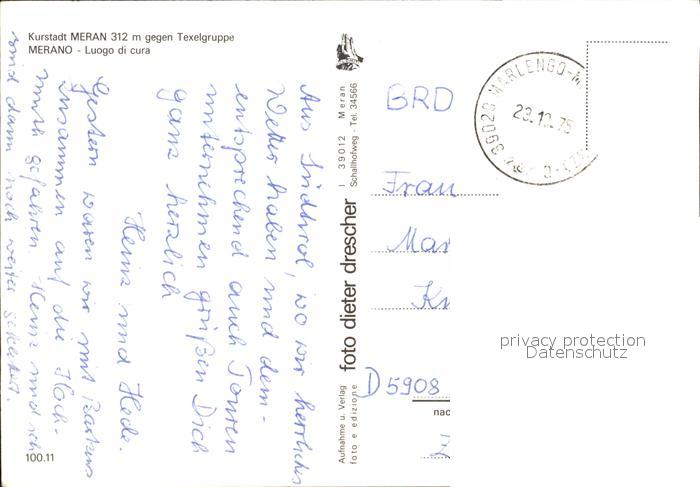 old postcard Merano Meran mit Texelgruppe postalisch gelaufen Erhaltung siehe scans