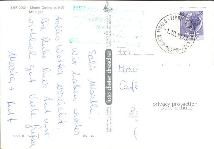 old postcard Merano Meran Monte Catino m.2400 postalisch gelaufen