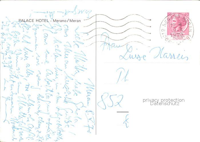 old postcard Merano Meran Palace Hotel postalisch gelaufen Erhaltung siehe scans