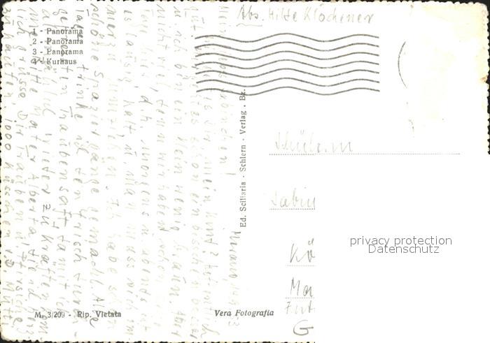 old postcard Merano Meran Panorama Kurhaus Trachtenkinder postalisch gelaufen Erhaltung siehe scans