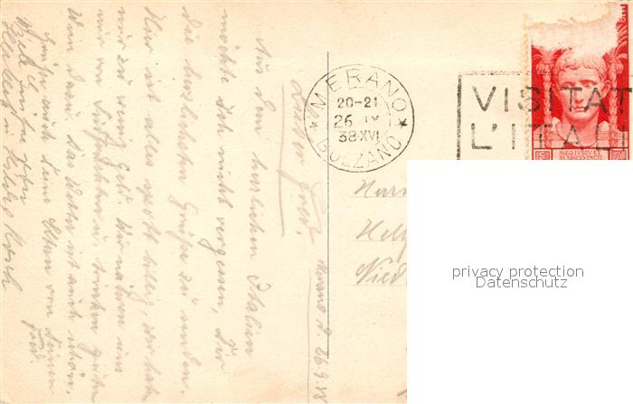 old postcard Merano Meran Panorama mit Texelgruppe postalisch gelaufen Erhaltung siehe scans [FriedD77]