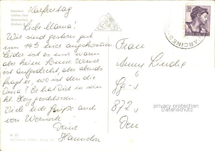 old postcard Merano Meran Panorama Schloss Tirol Brunnenburg Kurhaus postalisch gelaufen Erhaltung siehe scans