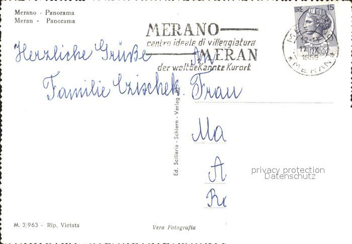 old postcard Merano Meran Partie an Bruecke postalisch gelaufen Erhaltung siehe scans