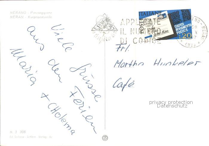 old postcard Merano Meran Passeggiata postalisch gelaufen Erhaltung siehe scans
