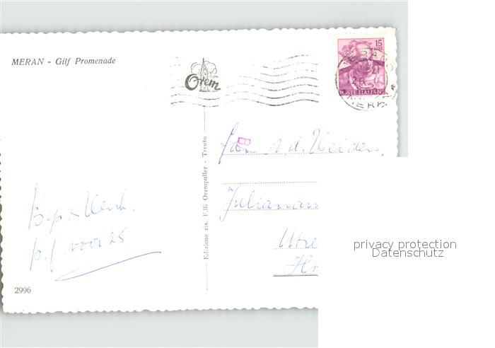 old postcard Merano Meran Passeggiata Gilf postalisch gelaufen Erhaltung siehe scans