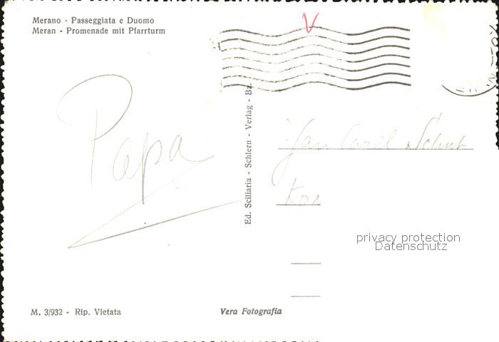 old postcard Merano Meran Passegiato e Duomo postalisch gelaufen Erhaltung siehe scans
