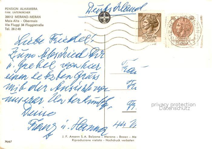 old postcard Merano Meran Pension Alhambra Aussenansicht postalisch gelaufen Erhaltung siehe scans [LiesaD40]